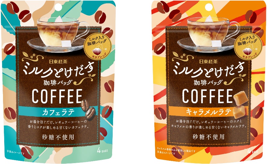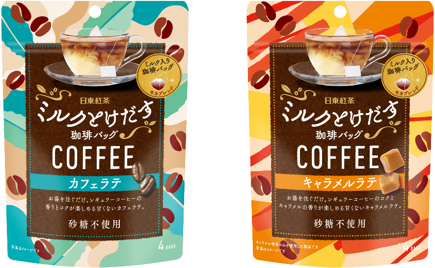 「日東紅茶」が珈琲に挑戦!『ミルクとけだすティーバッグ』から“珈琲”が登場「ミルクとけだす珈琲バッグ カフェラテ 4袋入り」「ミルクとけだす珈琲バッグ キャラメルラテ 4袋入り」 新発売
