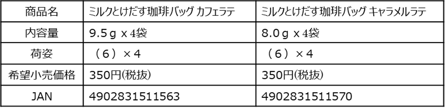 今回は、これまで当社が“TEA”の開発で培った技術をコーヒーにも応用することで、「お客様に新たな選択肢をご提案していきたい」という思いから、新シリーズの「ミルクとけだす珈琲バッグ」を新発売いたします。