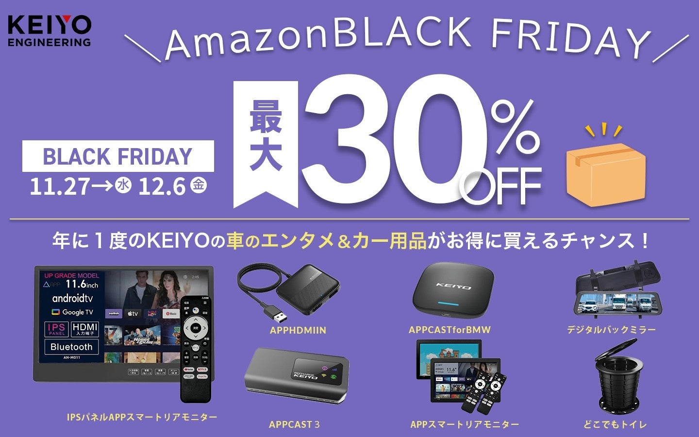 Amazonブラックフライデー先行セール:11月27日(水)~11月28日(木)/Amazon ブラックフライデー:11月29日(金)~12月6日(金)にてKEIYO製品がセール価格で販売