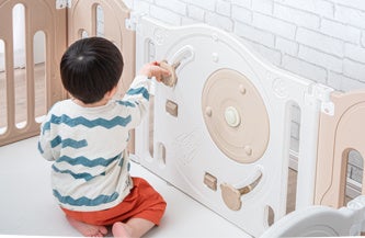 ベビーサークルに入ることを嫌がるお子様もいらっしゃいます。そういったお子様にも本製品は、「まわる・音が出る・うごく」の3つが備わった遊具パネルが備わっていますので、ベビーサークル内を楽しく過ごすことができます。お子様のひとり遊びやプレイサークルとしても活用が可能なため、家事などで手が離せない場面にも安心してご使用いただけます。
