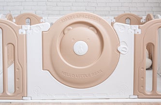 本製品の外側ドアパネルにはお子様も喜ぶくまさん付きのデザイン扉で、内側部分は宇宙をモチーフとしたデザインとなっています。デザイン扉によってベビーサークルに入りたがらないお子様にもサークル内が「楽しく遊べる場所」として出入りを促すことも可能です。