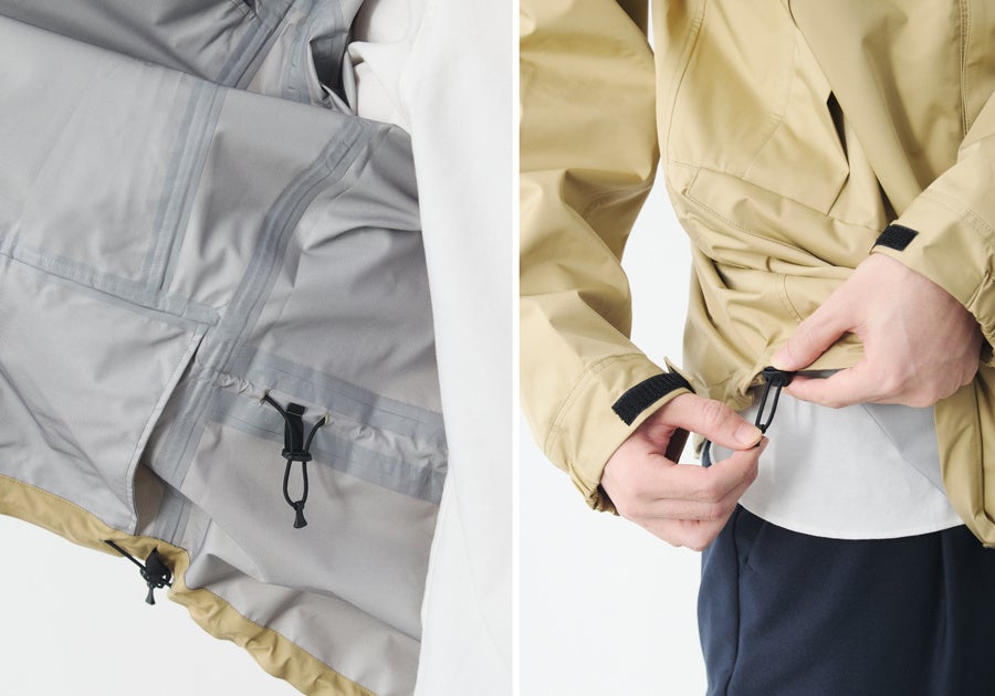今回のマウンテンパーカーの耐水圧はなんと「20,000mm」。一般的なレインウエアの約2倍の防水性です。