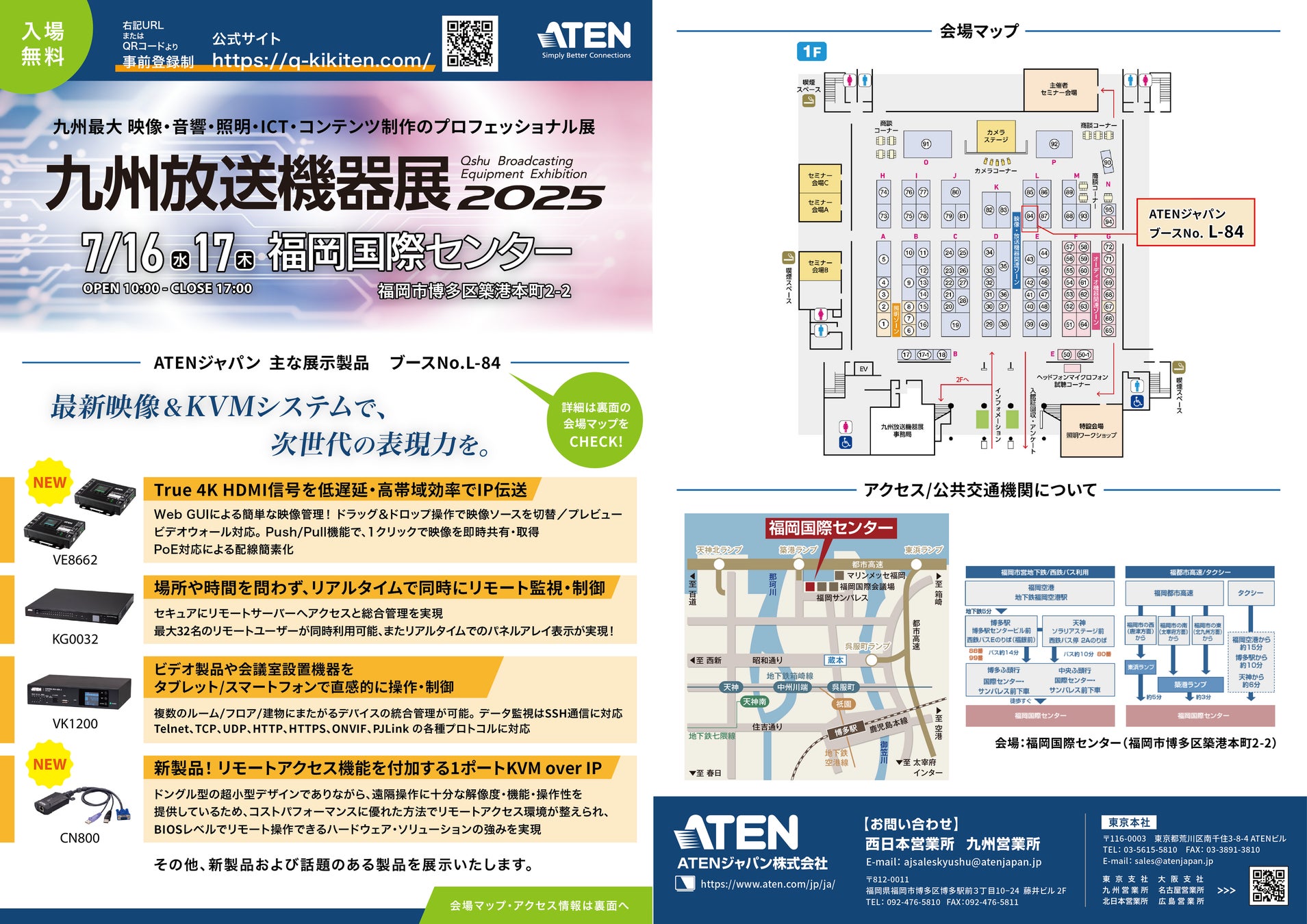 【ATENジャパン】九州放送機器展2025(7月16日~17日)に出展。 放送・映像制作現場に求められる高精細な映像伝送や、IT機器の遠隔制御を支えるソリューションをご紹介します。