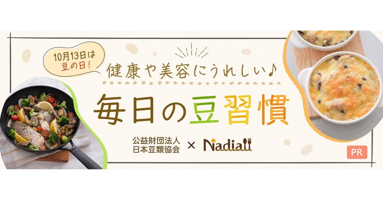 レシピサイト「Nadia」と公益財団法人日本豆類協会がタイアップ!特設企画ページ【10月13日は豆の日!健康や美容に嬉しい♪毎日の豆習慣】を公開!