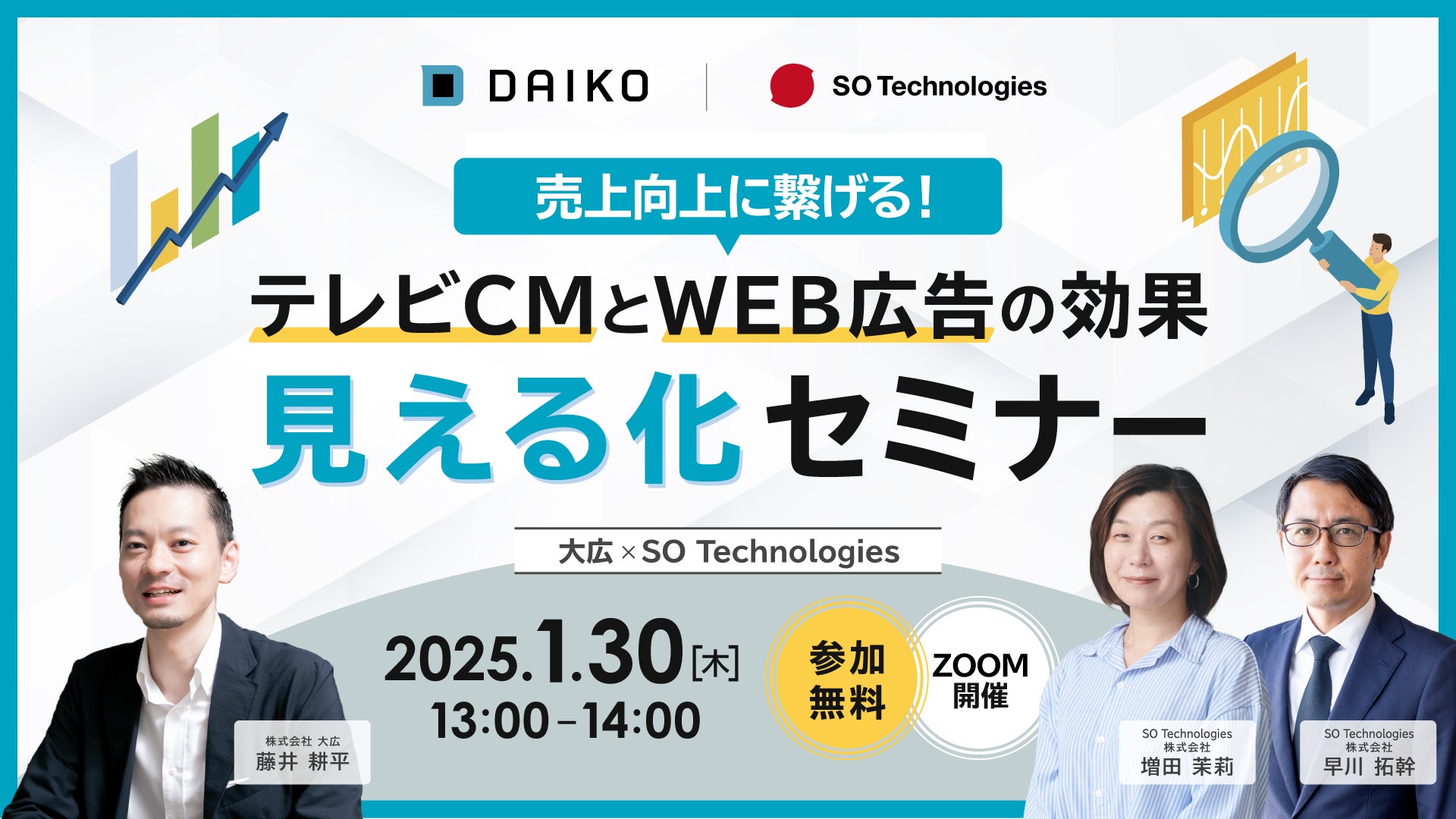 大広×SO Technologies共同の「売上向上に繋げる!テレビCMとWEB広告の効果“見える化”セミナー」を2025年1月30日(木)に開催。