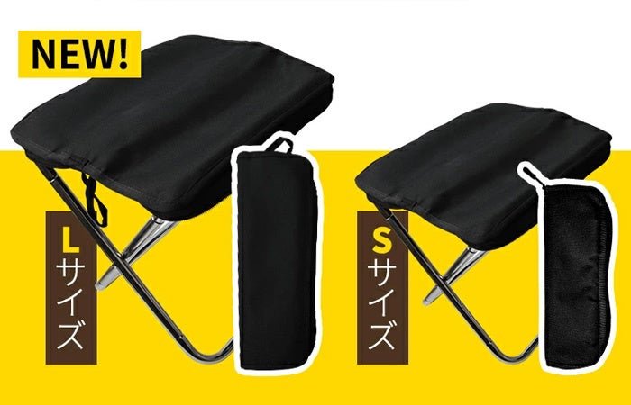 収納袋と座面を併用している一体式のコンパクト折り畳み椅子。大きいサイズを販売開始!