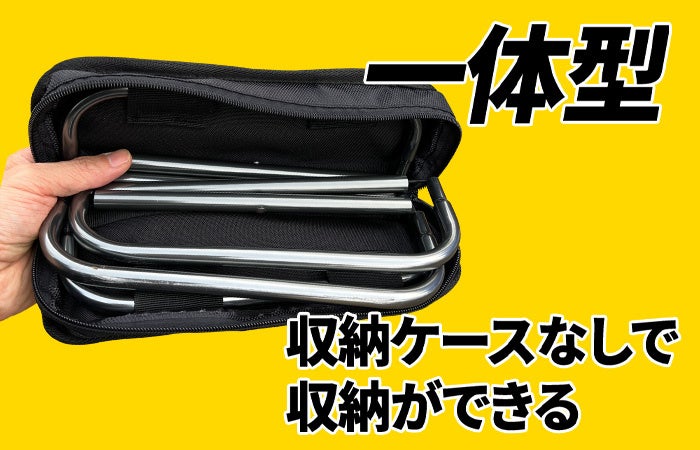 一般的な折り畳み椅子は、椅子本体と収納袋が別々になっています。