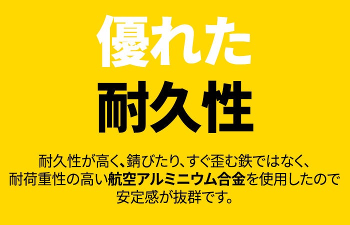 アルミニウム合金を使用しており、耐久性が高く、耐荷重性も優れています。