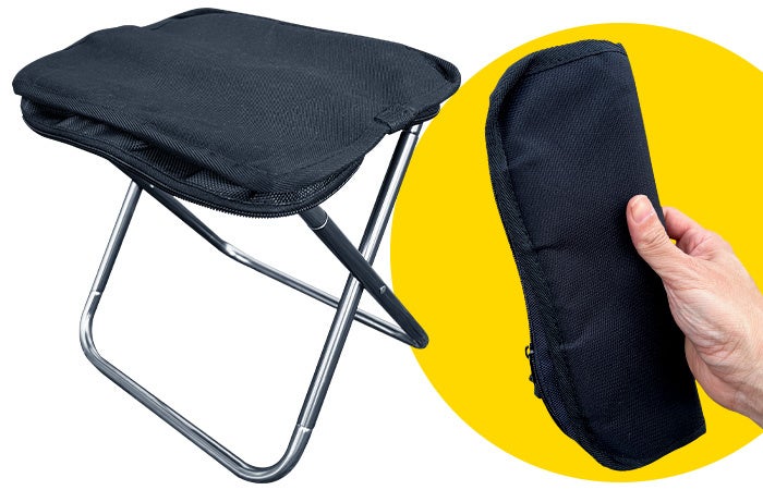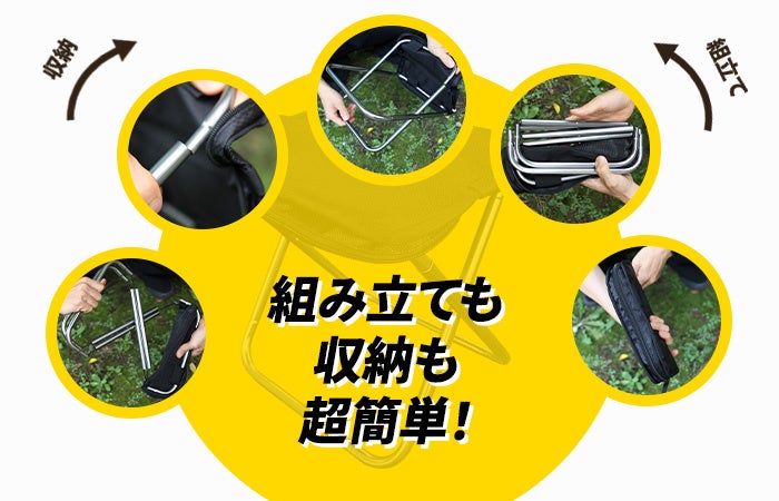 カバンにも余裕で入って、お子様連れの方や行列の待ち時間、アウトドア、スポーツ観戦など様々なシーンで使える折り畳み椅子。