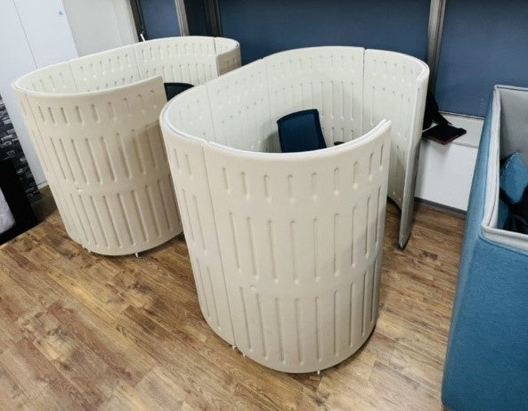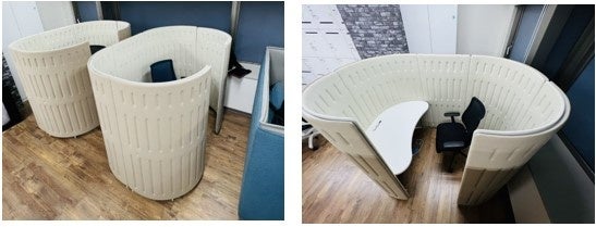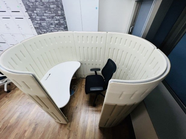 またリニューアルに際し、オープンなスペースばかりではなくブース型のセミクローズドは集中力の必要な執務に最適なフォーカスブースエリアも設置しました。勿論、こちらもリユース家具を用いて生産性の向上に加えコストの削減も実現しています。