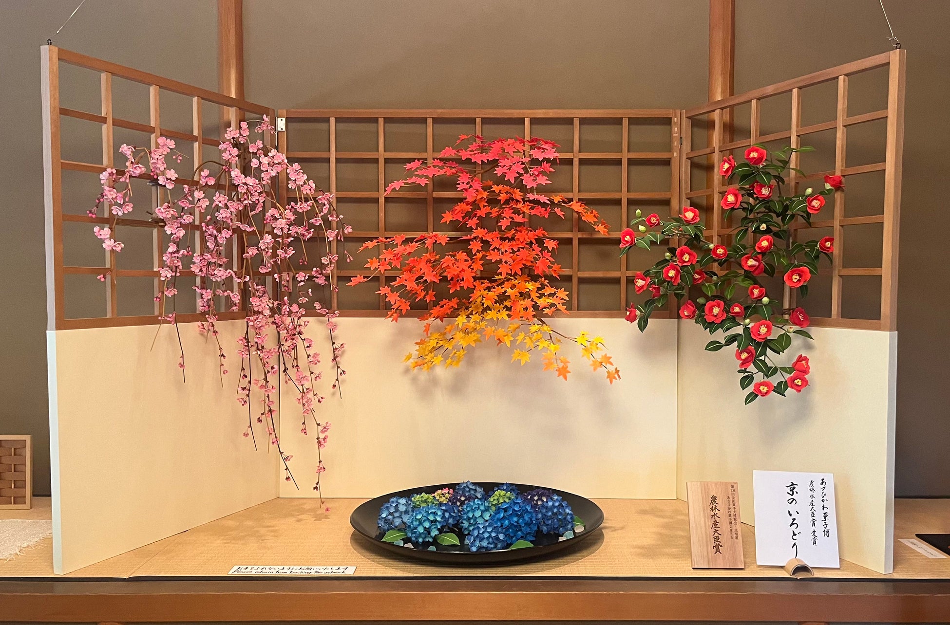 菓子製造販売の株式会社 鶴屋吉信(つるやよしのぶ)(本社:京都市上京区、代表取締役社長:稲田慎一郎)では、「第28回全国菓子大博覧会・北海道 あさひかわ菓子博2025」(2025年5月30日(金)~6月15日(日)開催)に出展し「農林水産大臣賞」を受賞いたしました工芸菓子「京のいろどり」を、本店2階のお休み処(茶寮)にて展示いたしております。
