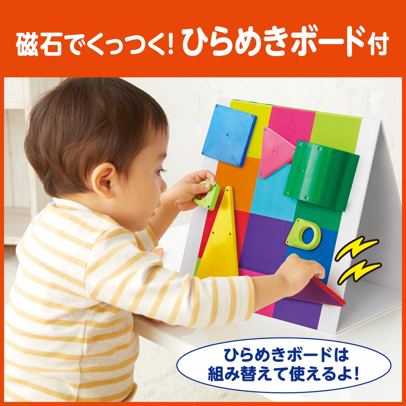 不思議な磁石でピタッ!とくっつけて楽しく遊んでいるうちに、自然と平面から立体をつくり上げるイメージをつかめるようになり、「空間認識力が育つ」「後々の算数に役立つ」と多くの子どもたちや保護者の方に支持されて、今年発売30周年を迎えます。