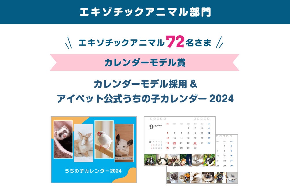 さらに、投稿いただいた写真の中から、【ワンちゃん・ネコちゃん部門】と【エキゾチックアニマル部門】においてそれぞれ優秀作品を選出し、アイペット公式カレンダーのモデルとして採用します。