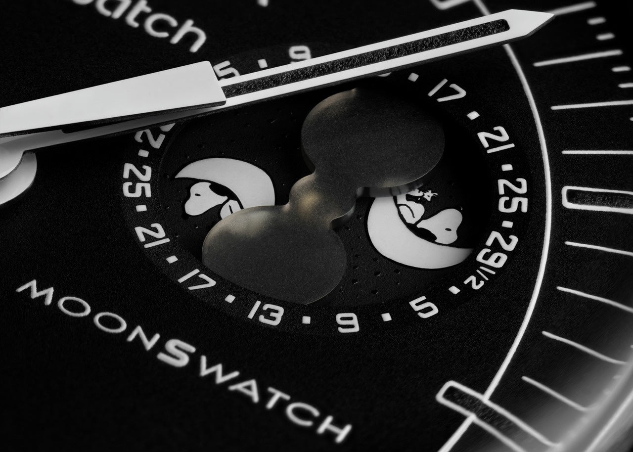 Snoopy はBioceramic MoonSwatch MISSION TO THE MOONPHASE – FULL MOON のムーンフェイズディスクにも登場しています。こちらのモデルはすでに厳選されたSwatch ストアで購入可能です。