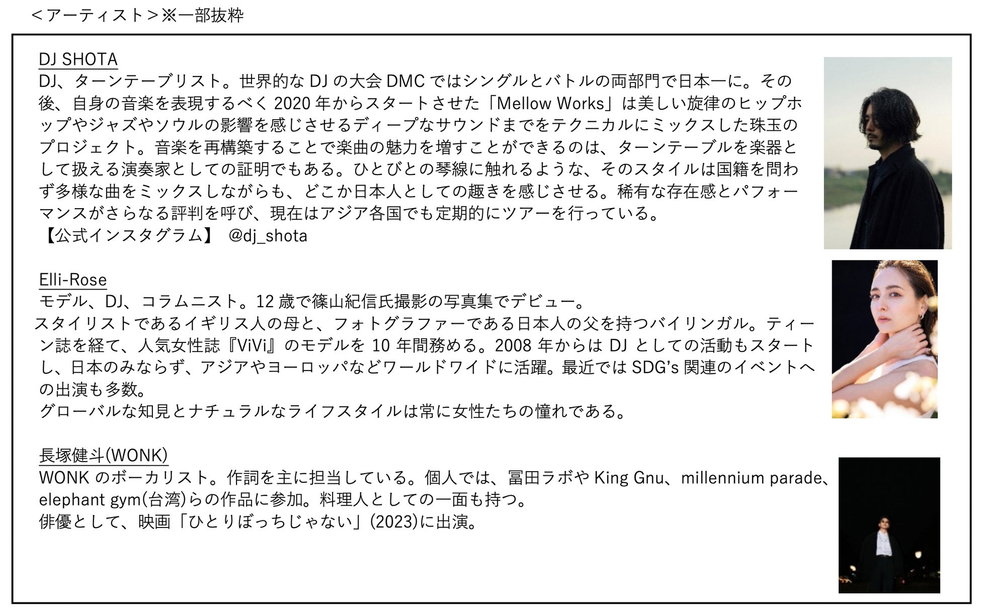「SCRAMBLE MUSIC SHOW」が「SHIBUYA SCRAMBLE COLLECTION SPRING」とコラボレーション。ファッションショーに華を添える豪華なDJとして、DJ SHOTA、Elli-Rose、長塚健斗(WONK)らが登場し会場を盛り上げます。ランウェイではDJ SHOTAがモデルの動きに合わせた音楽演出も行います。