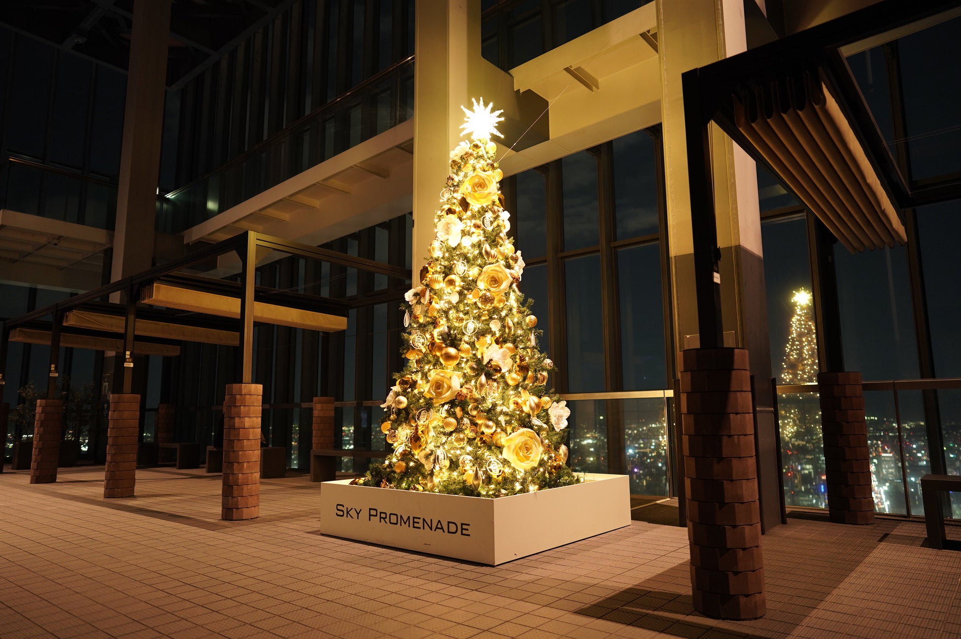 この催しは、東海地方で最も高いビル・ミッドランドスクエアの44〜46階にある屋外展望台「スカイプロムナード」で、屋外展望台の壁面に光り輝く雪の結晶や宝石をイメージしたデジタルアートコンテンツのプロジェクションマッピング映像を投影するとともに、きらめくクリスマスオブジェで夜を彩る期間限定イベントです。開催に合わせて公式写真を公開しました。