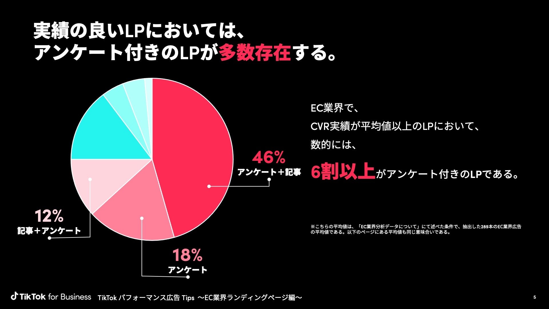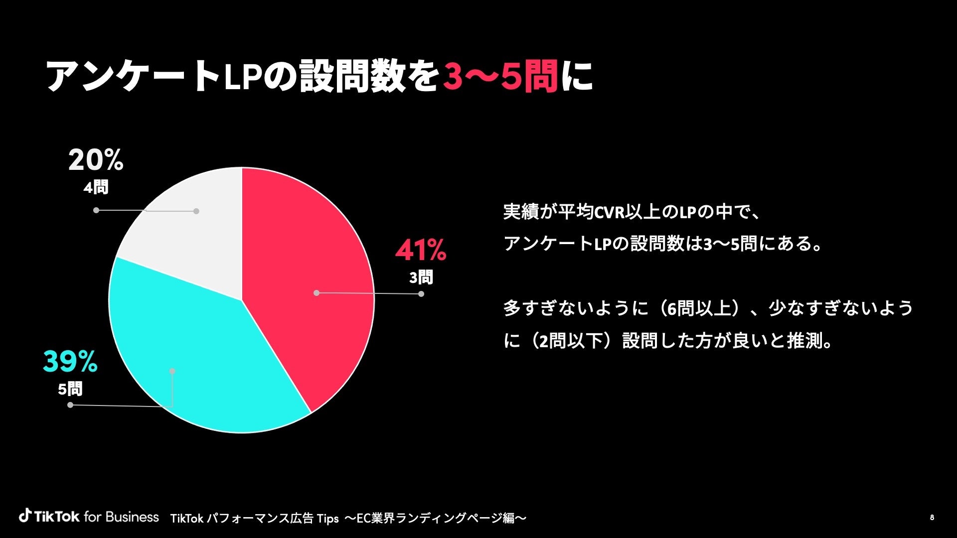 この結果をもとに、動画広告の遷移先であるランディングページ(以下、LP)について、より効果を高めるポイントをまとめた「TikTokパフォーマンス広告Tips 〜EC業界ランディングページ編〜」調査レポートを初公開しました。