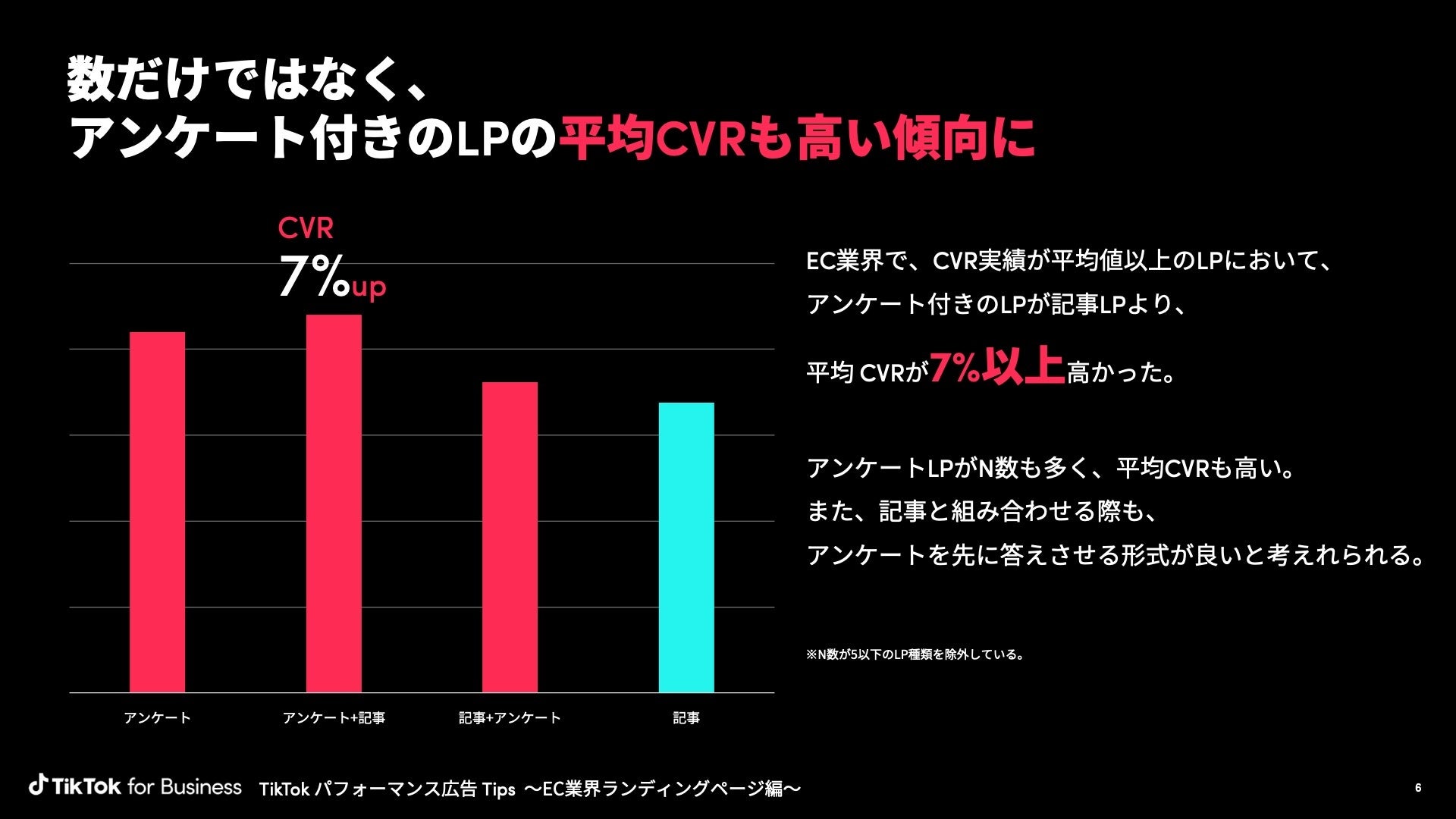 平均CVRの比較においても、アンケート付きのLPは記事だけのLPより、7%以上高くなっています。