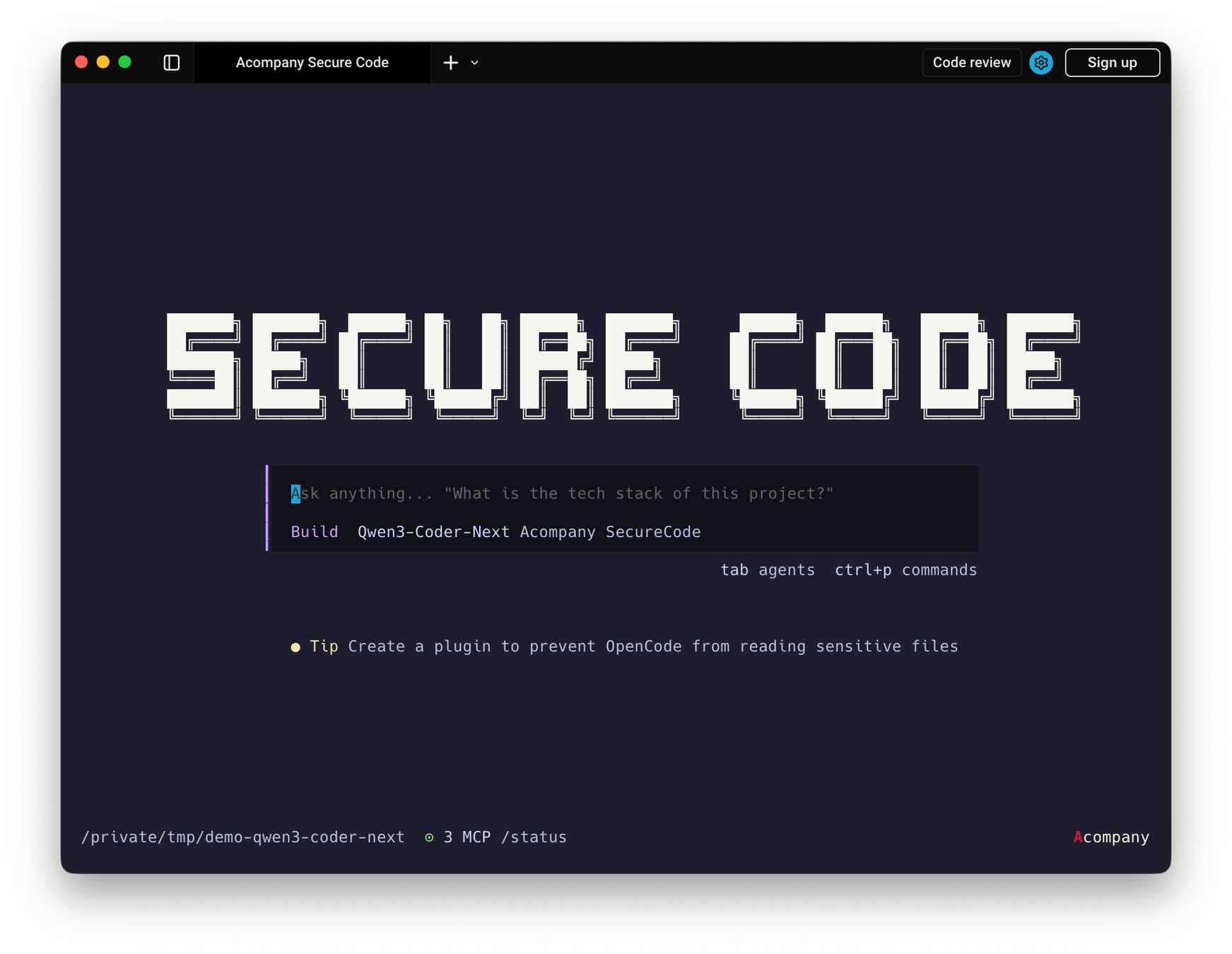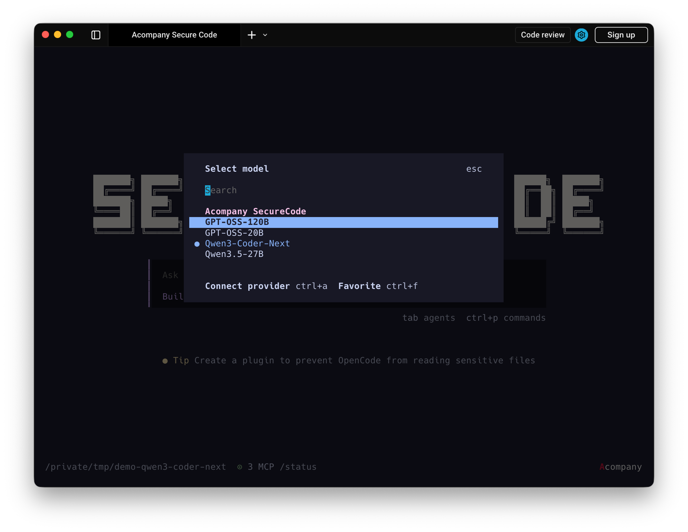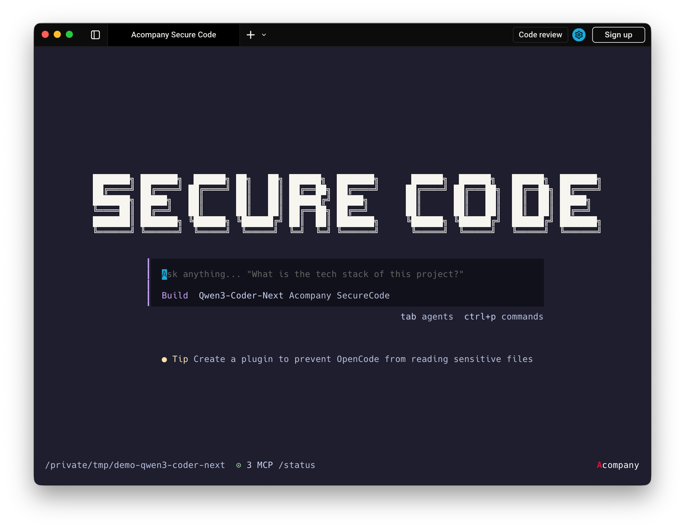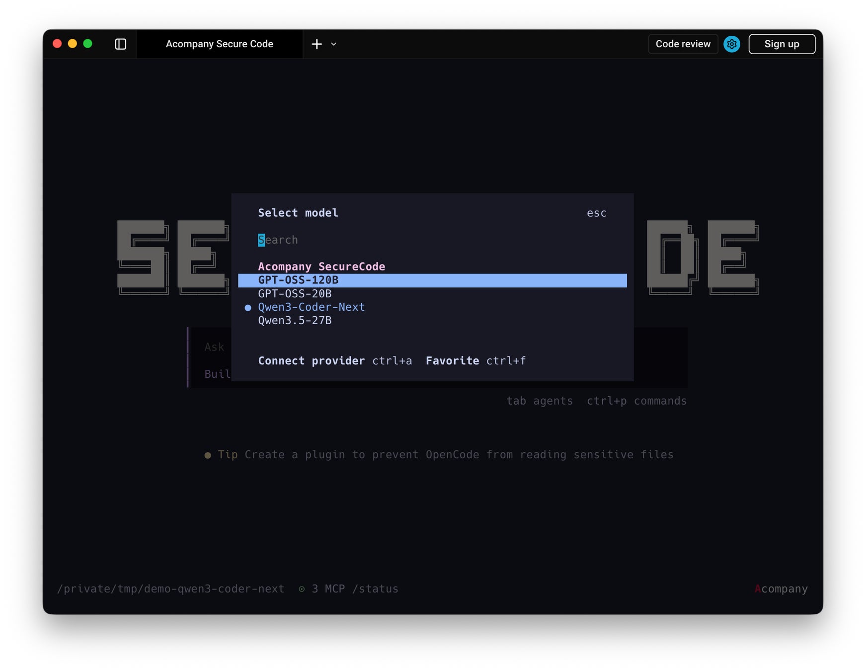 「Acompany セキュアコード」は、opencodeをベースとしたCoding Agentであり、Confidential Computing(秘密計算)インフラ上のLLMを利用可能なコーディング支援サービスです。