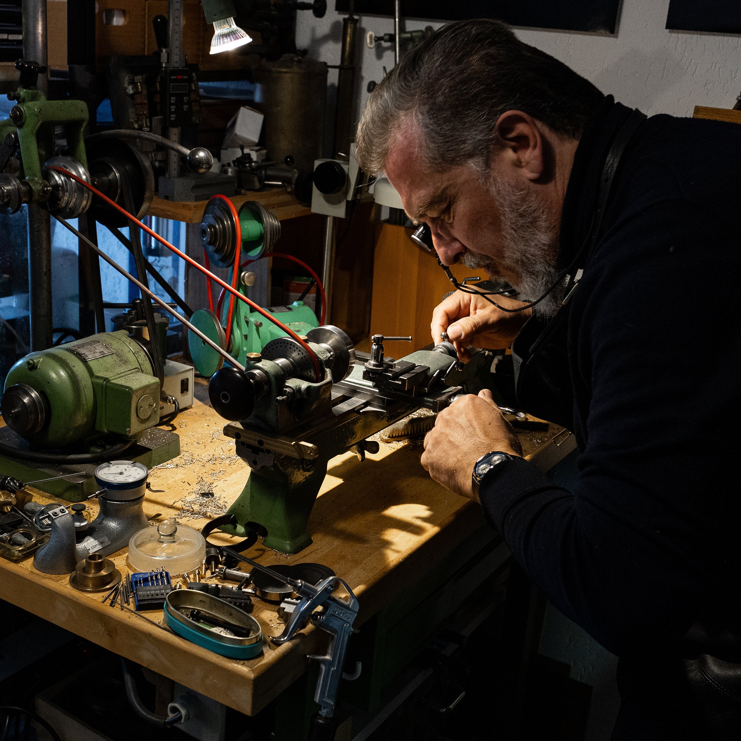 セドリック・ジョナーは一人で制作を行っています。彼のその両手だけで何でもできるのです。しかしどうやって?それがセドリック・ジョナーの物語です。彼は業界のあらゆる変化を経験し、さまざまな職業を実践してきた一流の職人です。彼のキャリアは、ショパールのジュエラー見習いから始まりました。その後、時計職人としての修業を積みます。実践が彼にすべてを教えてきました。彼は学ぶためにあらゆる機会、そして多くの出会いを利用し活かしてきました。