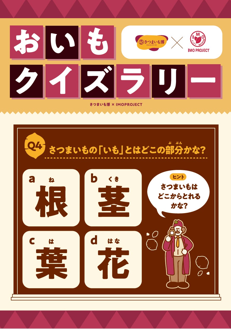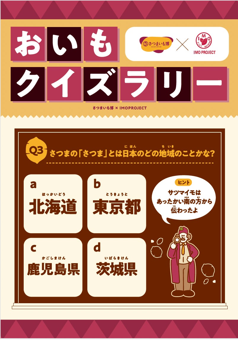 会場に隠されたクイズ問題を探し答えるクイズラリー。今回はさつまいもに詳しくなる問題ばかりを集めました。楽しみながらさつまいもの勉強をしてください。