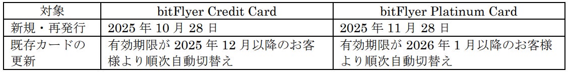 当社は今後、「bitFlyer クレカ」のデザイン刷新も予定しております。