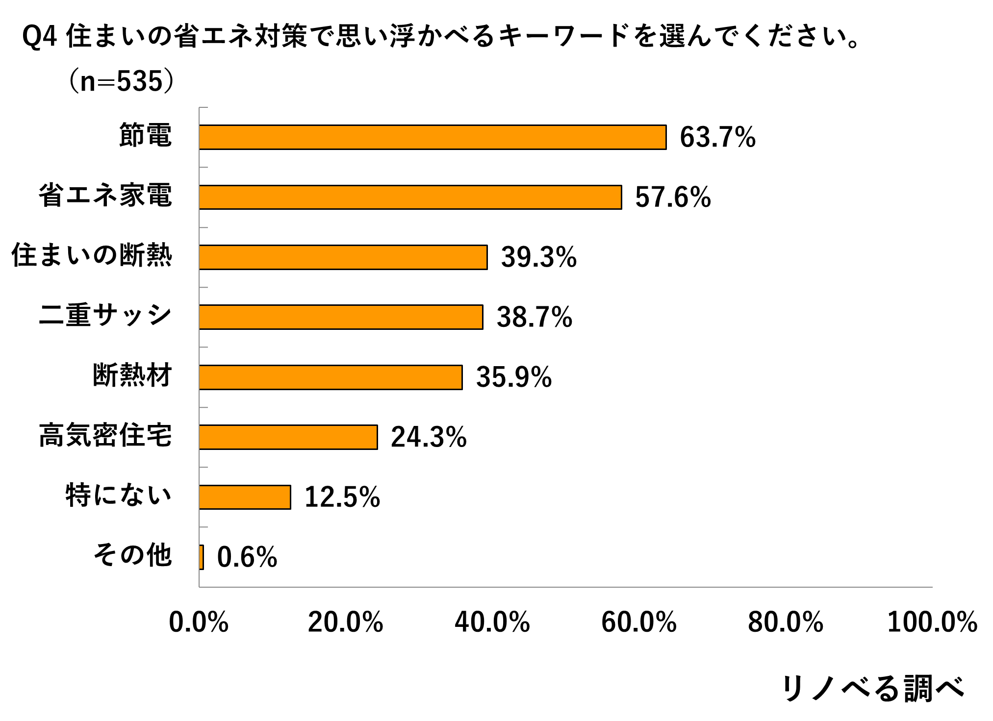 Q4:住まいの省エネ対策で思い浮かべるキーワードを選んでください。