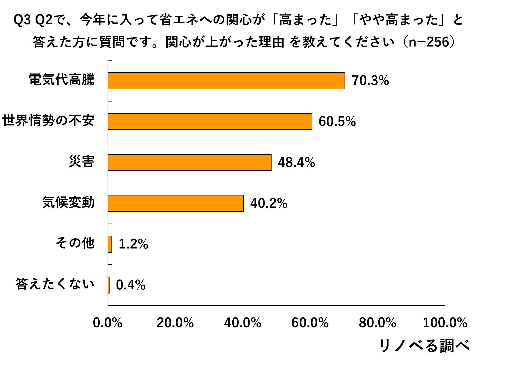 Q3:Q2で、今年に入って省エネへの関心が「高まった」「やや高まった」と答えた方に質問です。関心が上がった理由を教えてください。