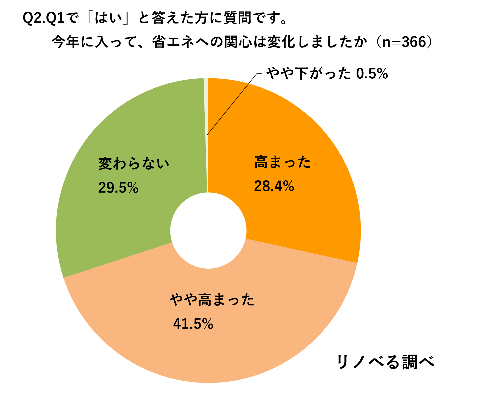 Q2:Q1で「関心がある(はい)」と答えた方に質問です。今年に入って、省エネへの関心は変化しましたか?