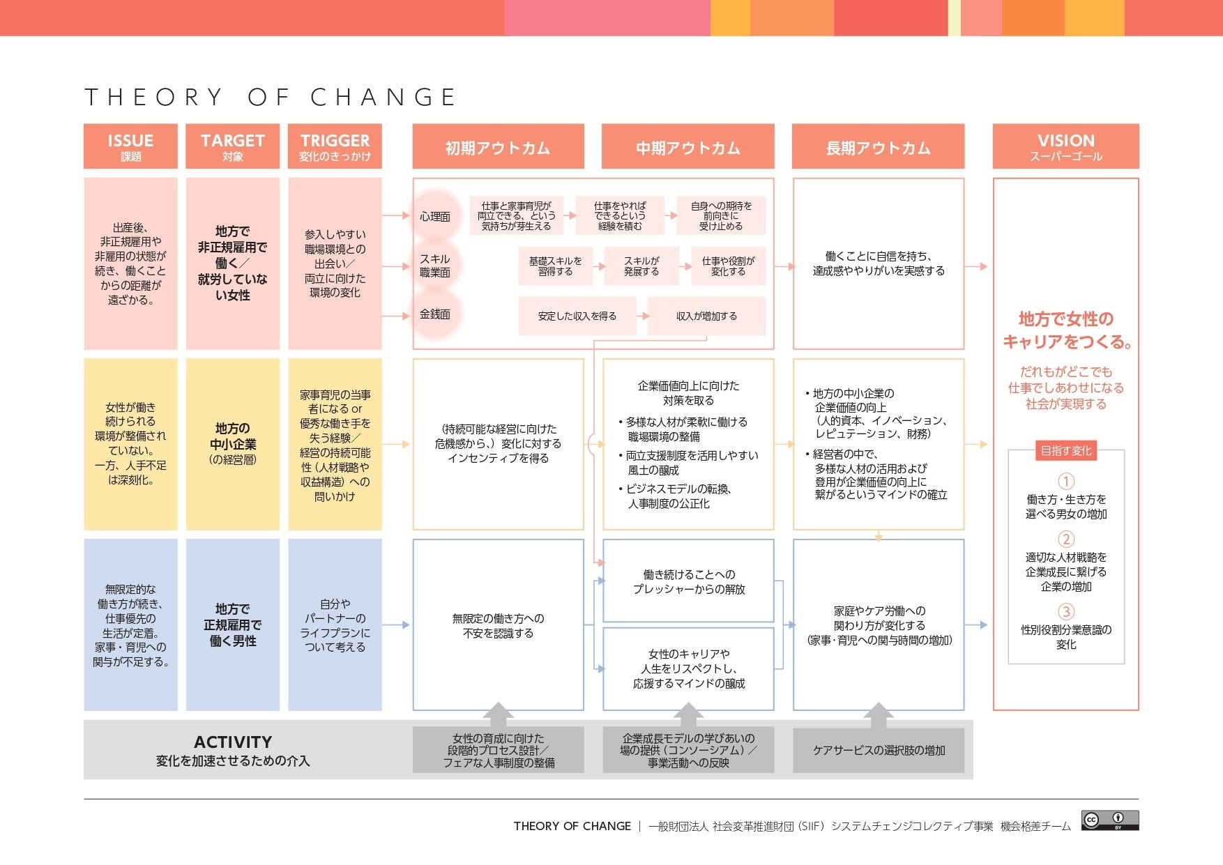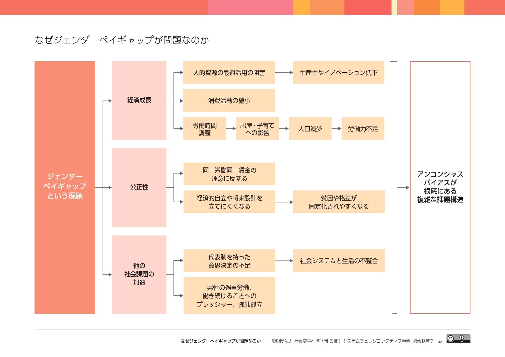 2025年度版では、より多様な当事者の視点を織り込み、課題構造を「社会文化的要因」「制度的・経済的要因」「教育要因」の3つに再構成しつつ、SIIFとして目指すゴールの名文化、ジェンダーペイギャップが問題となる理由、変化の理論も設定しています。