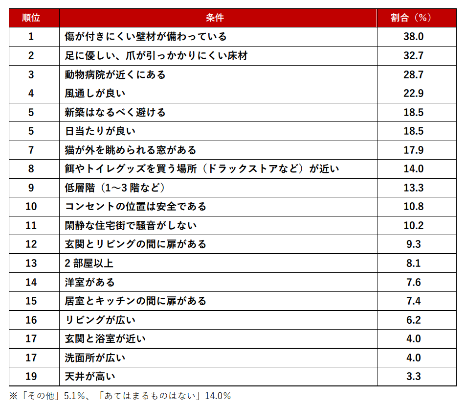 - ≪猫編≫ 1位 「傷が付きにくい壁材が備わっている」 38.0%