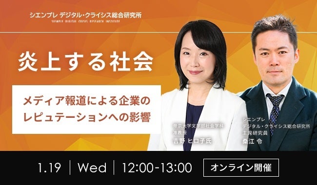 シエンプレ デジタル・クライシス総合研究所」(所長:佐々木寿郎、住所:東京都渋谷区神南1-19-14 クリスタルポイントビル 2F、以下「当研究所」)は、経営者、広報、マーケターの皆様の業務判断の参考となるよう、世の中の炎上事例や神対応事例を分析し、無料セミナーにて情報提供を行っております。