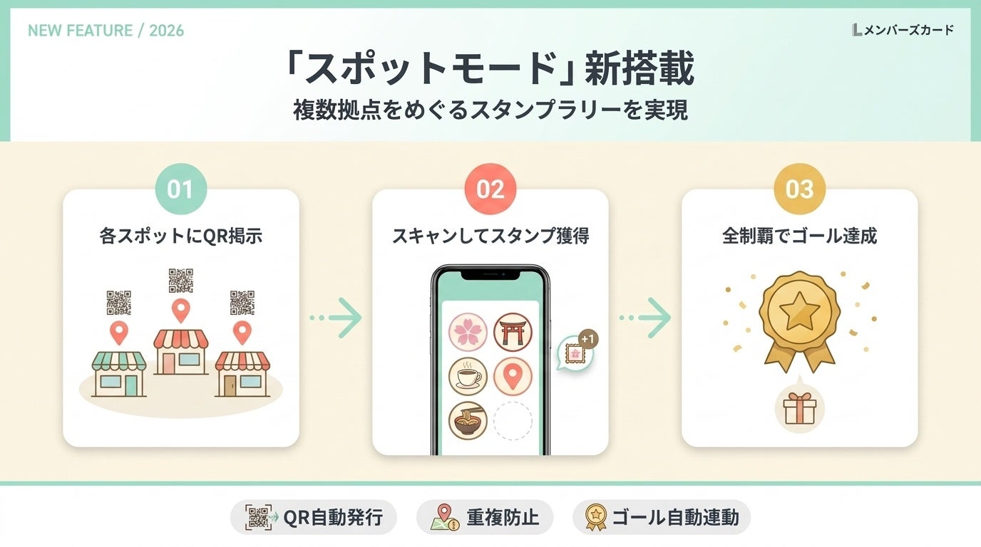 デジタル会員証LINEミニアプリ「Lメンバーズカード」、複数拠点をめぐるスタンプラリーを実現する『スポットモード』を新搭載