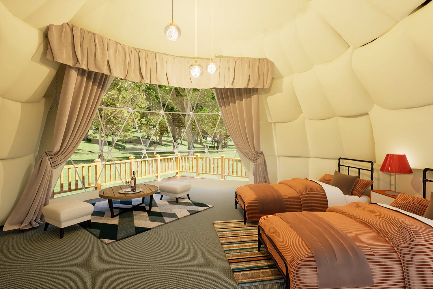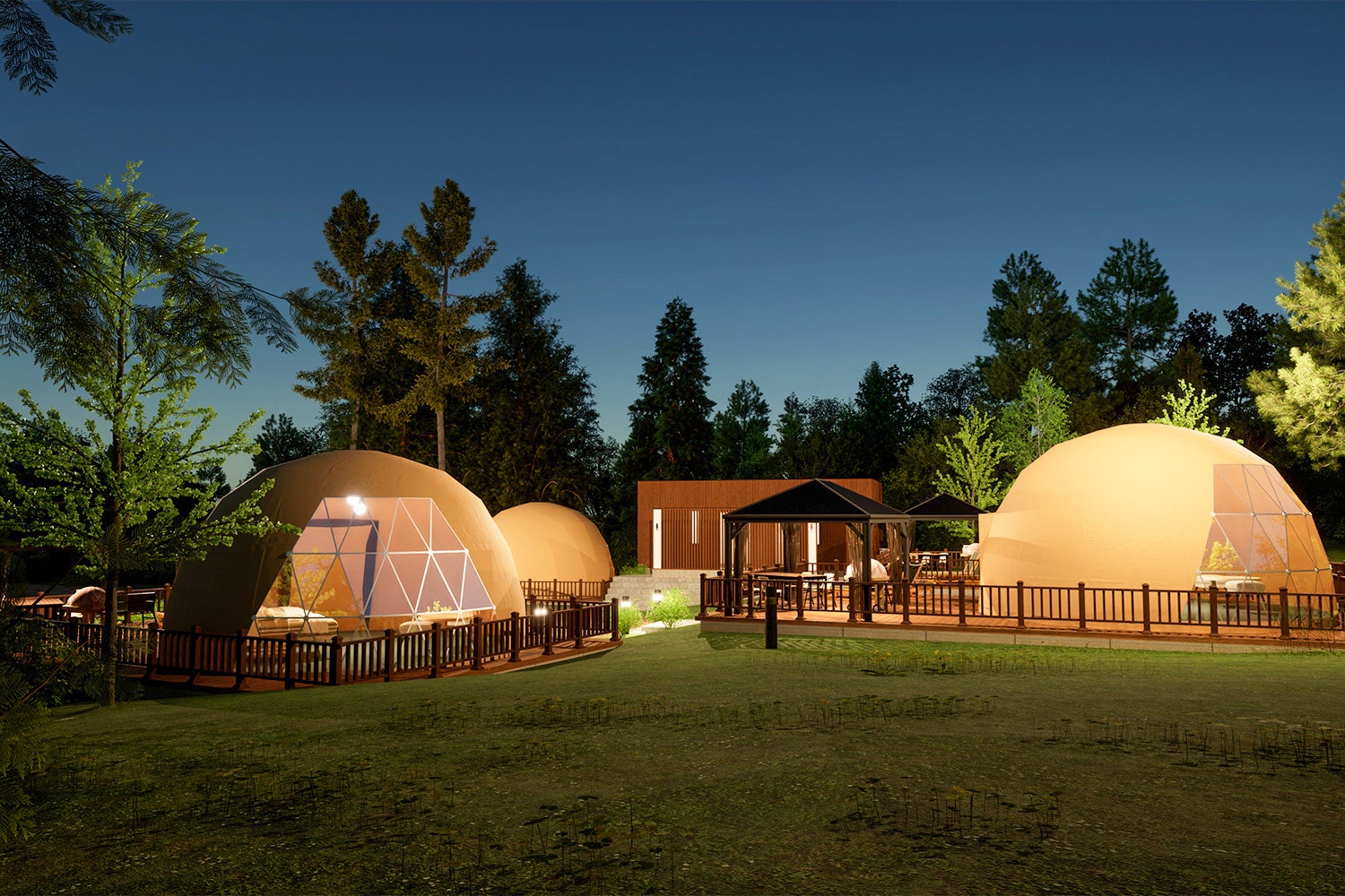 - 通年快適!高規格設備冷暖房完備のドーム型テント