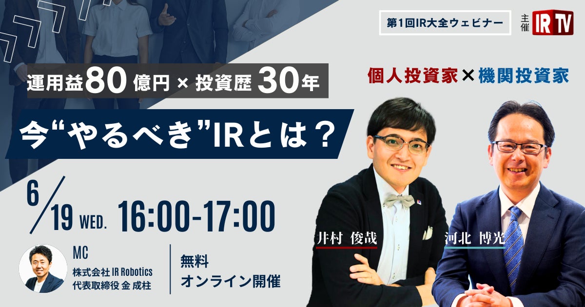 【無料IRウェビナー】個人投資家 井村俊哉氏 x 機関投資家 河北博光氏が語る『投資家が知りたいIR情報とは?』