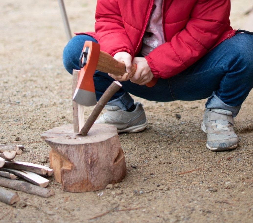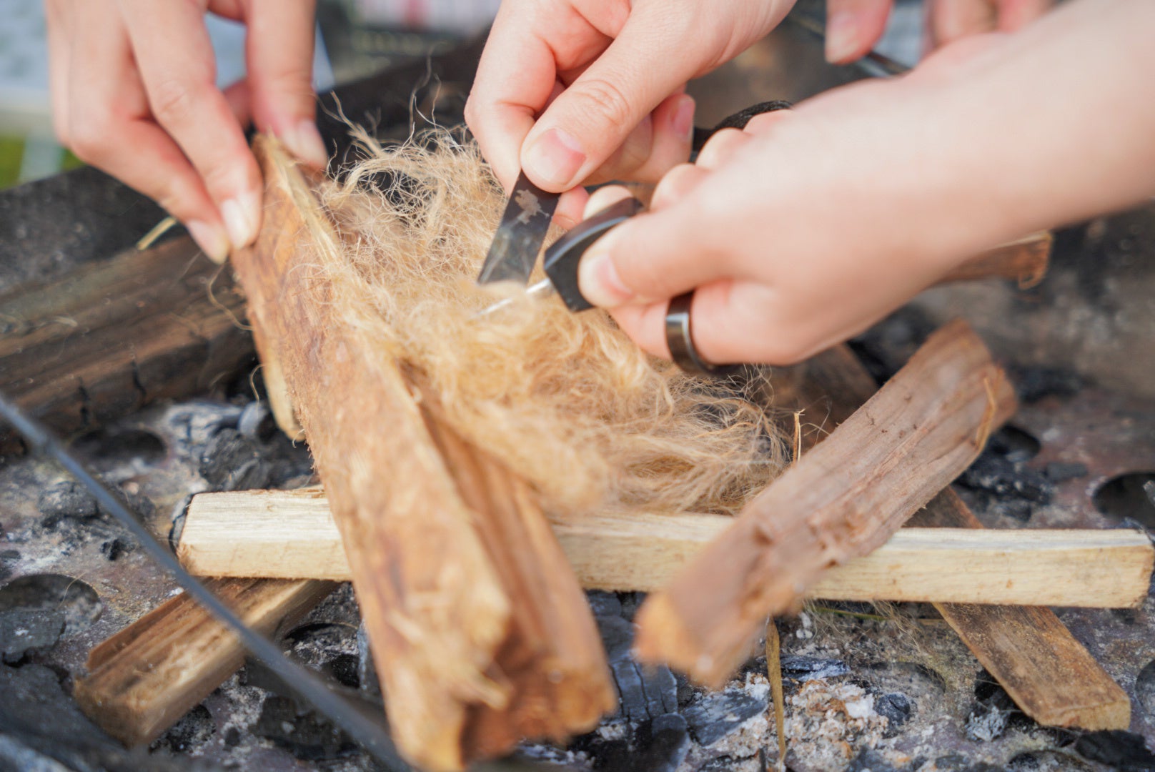 薪わりやフェザースティックづくり、火おこしなど、はじめてでも気軽に挑戦できます。