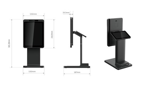 店舗側の操作用と顧客側の顔認証用の2画面デュアルディスプレイを有しております。