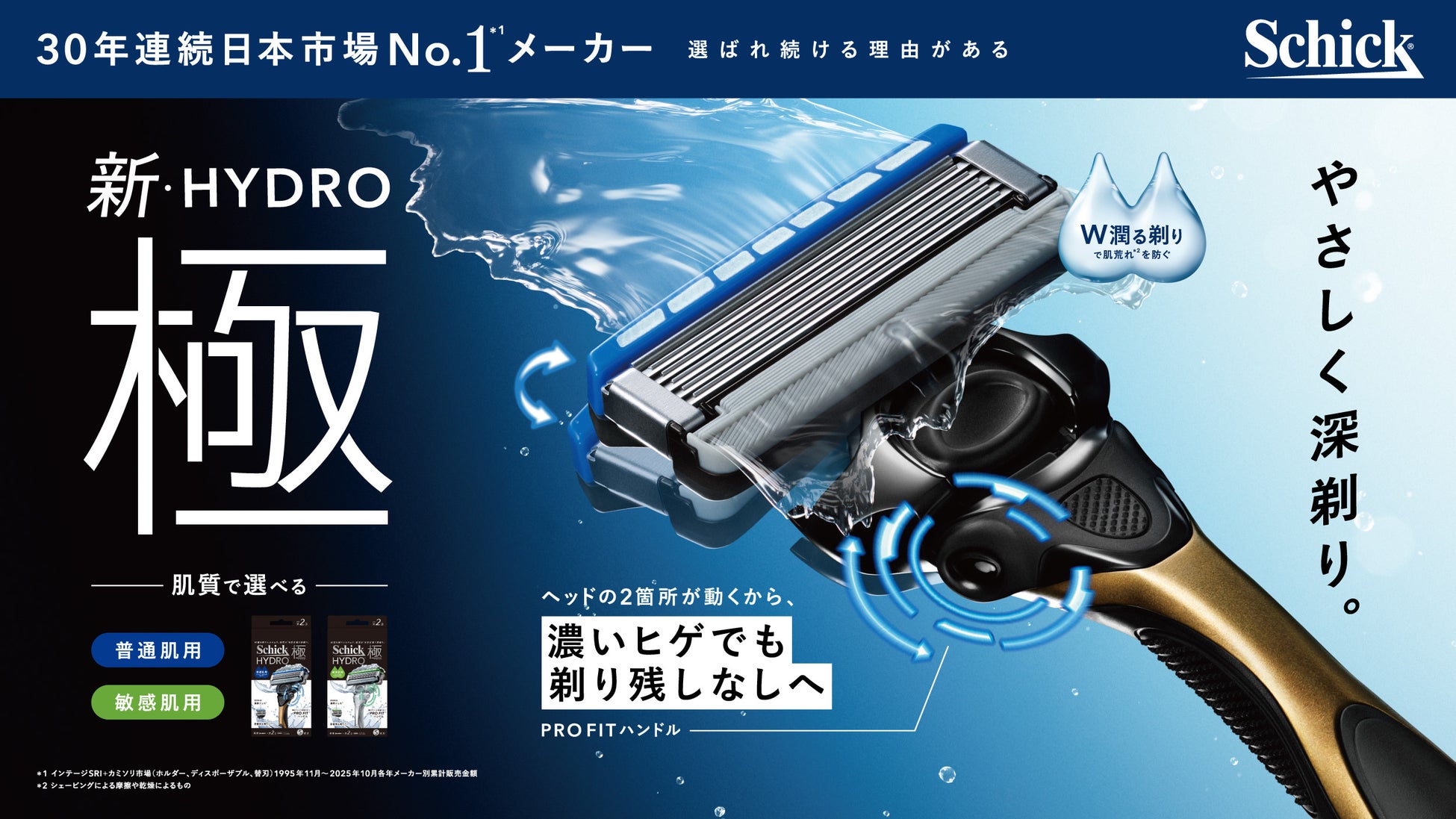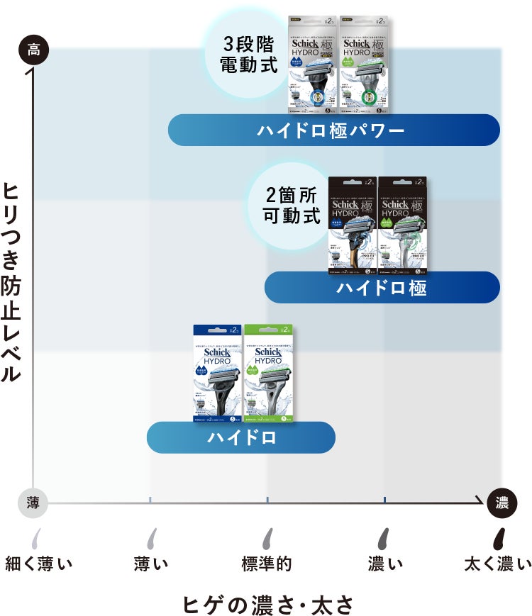 さらに、高機能モデルとして人気の「極(きわみ)」シリーズがHYDRO(ハイドロ)ブランド傘下に加わり、ブランド全体での機能強化と選びやすさを追求。日本カミソリ市場シェアNo.1*1ブランドとして、男性一人ひとりの肌とヒゲに寄り添う新しいシェービング体験を提供します。