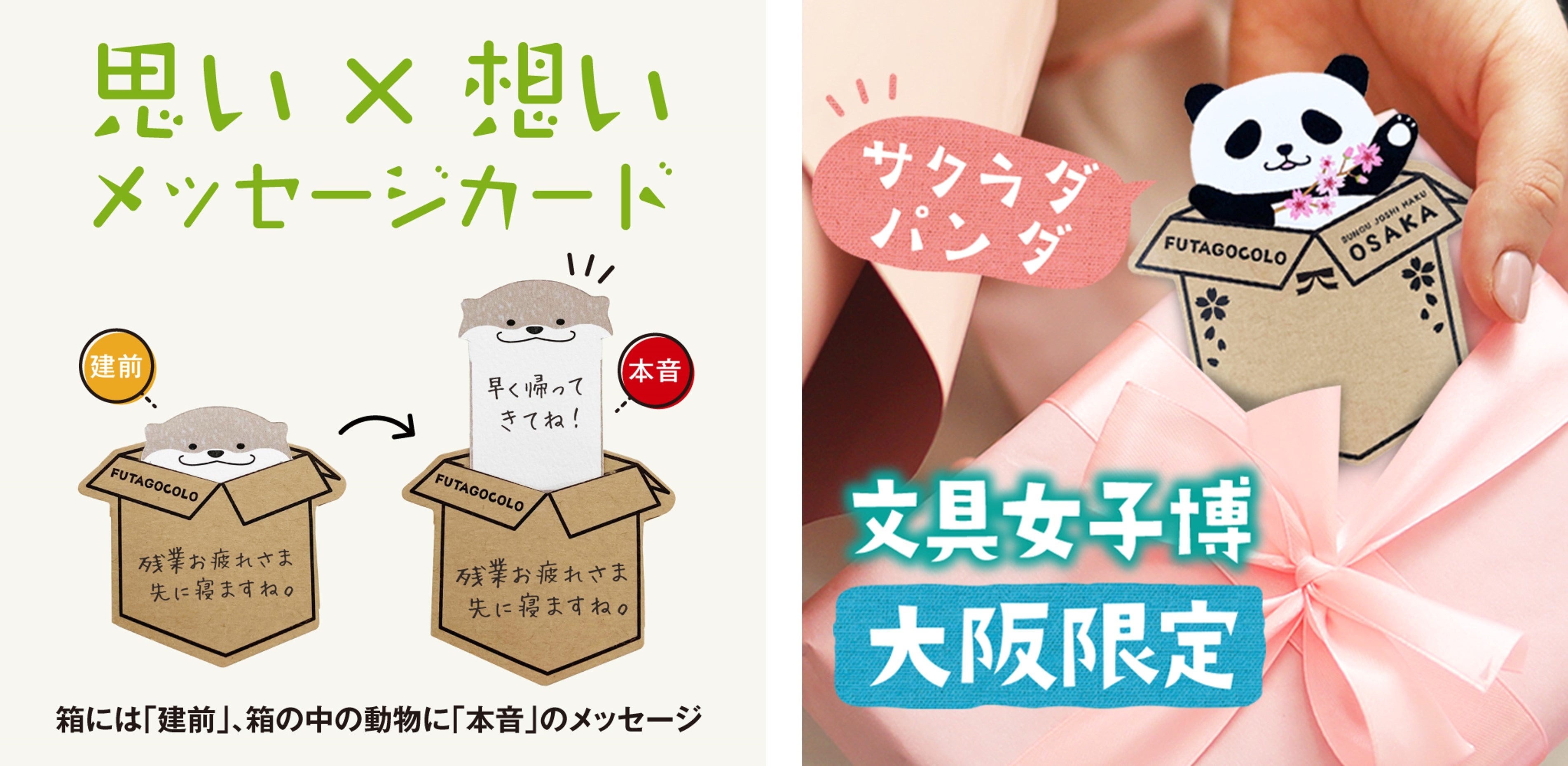隠れた本当の気持ち…届け! 動物たちが「本音」と「建前」のふたつの想いを届けてくれるメッセージカード、FUTAGOCOLO(ふたごころ)。春にぴったりな大阪限定のサクラダパンダが登場です。