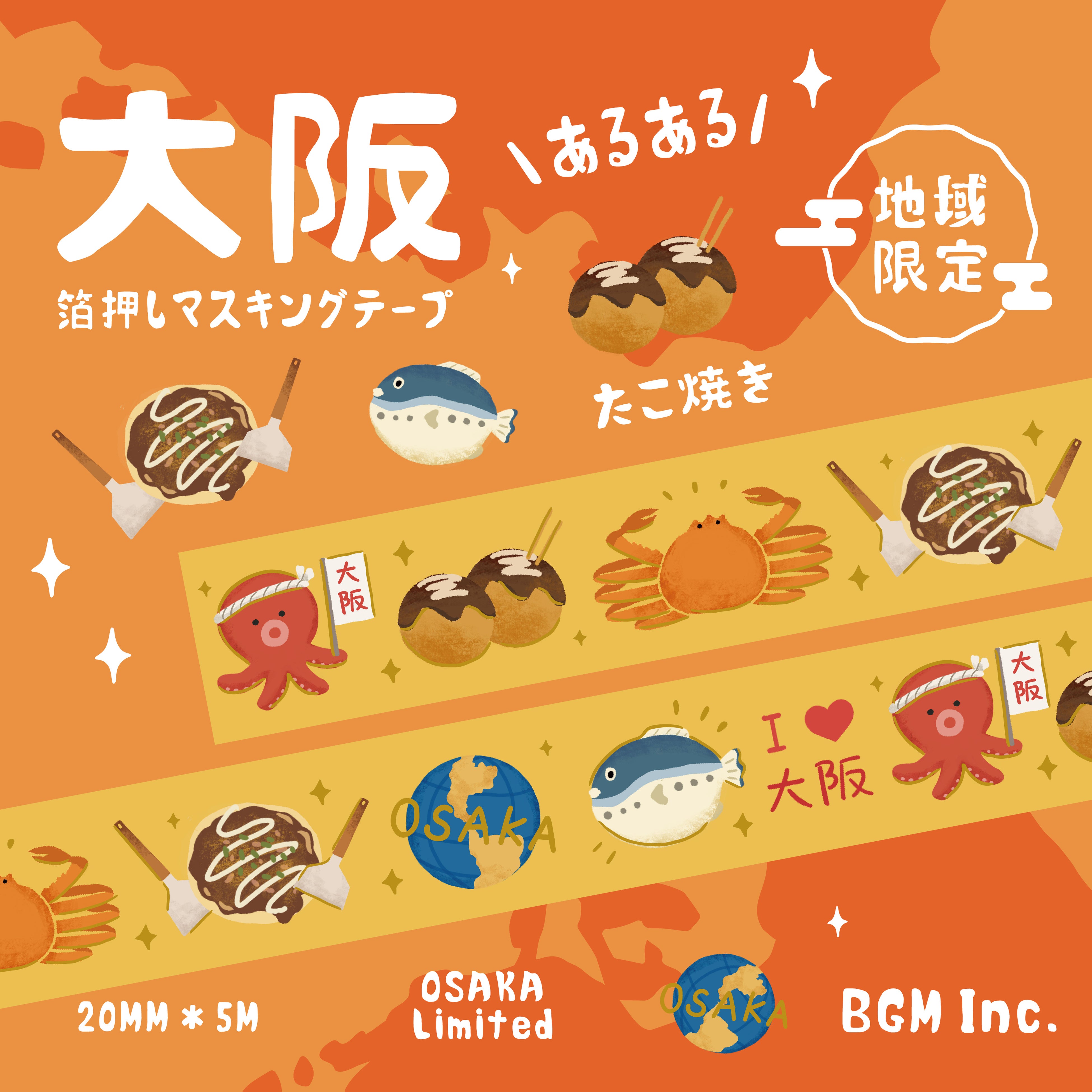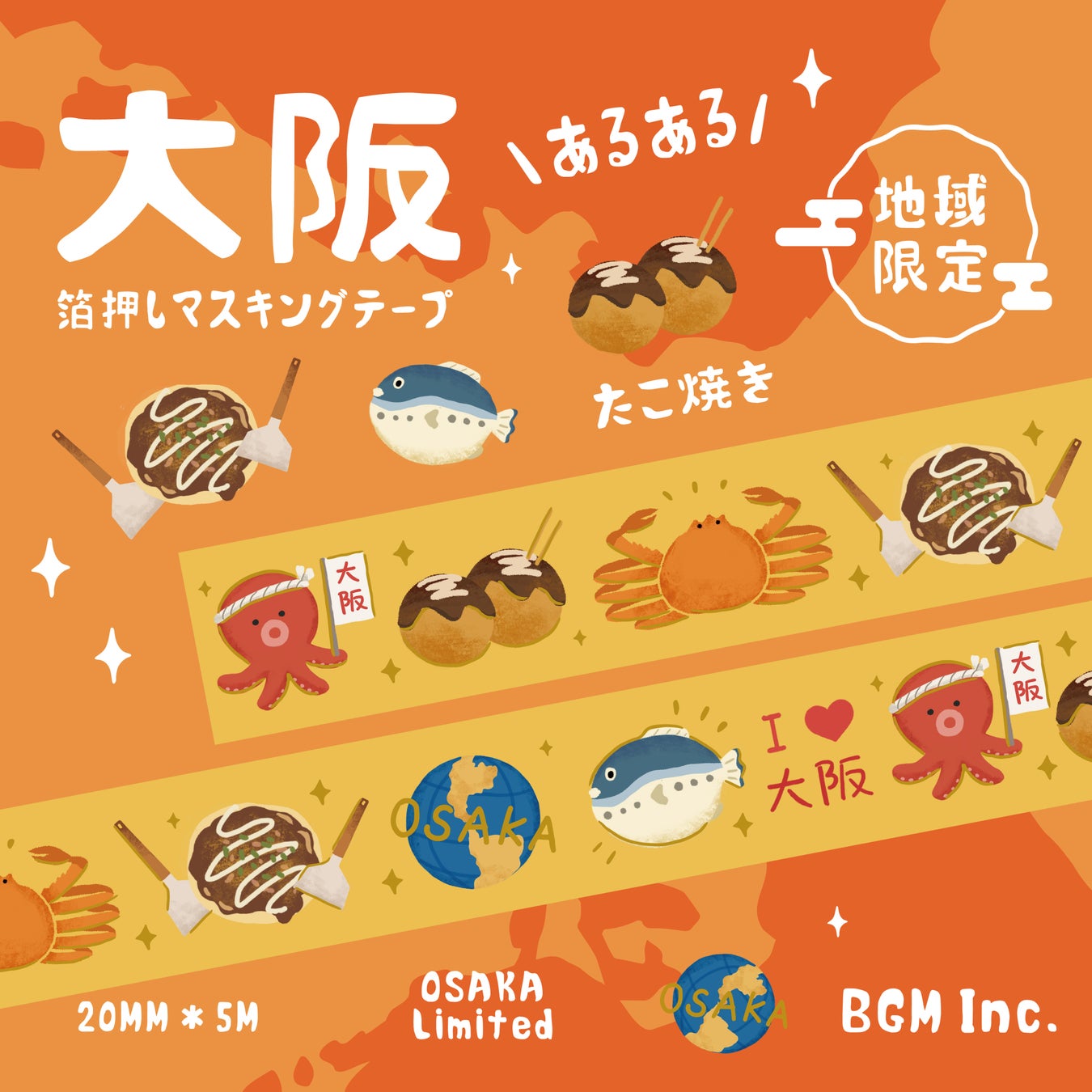 大阪の魅力をギュギュっと詰め込んだ地域限定マスキングテープです!たこ焼き、お好み焼き、かに、ふぐ、たこなどユニークで可愛いデザイン。この機会に大阪限定商品をぜひゲットしてください!