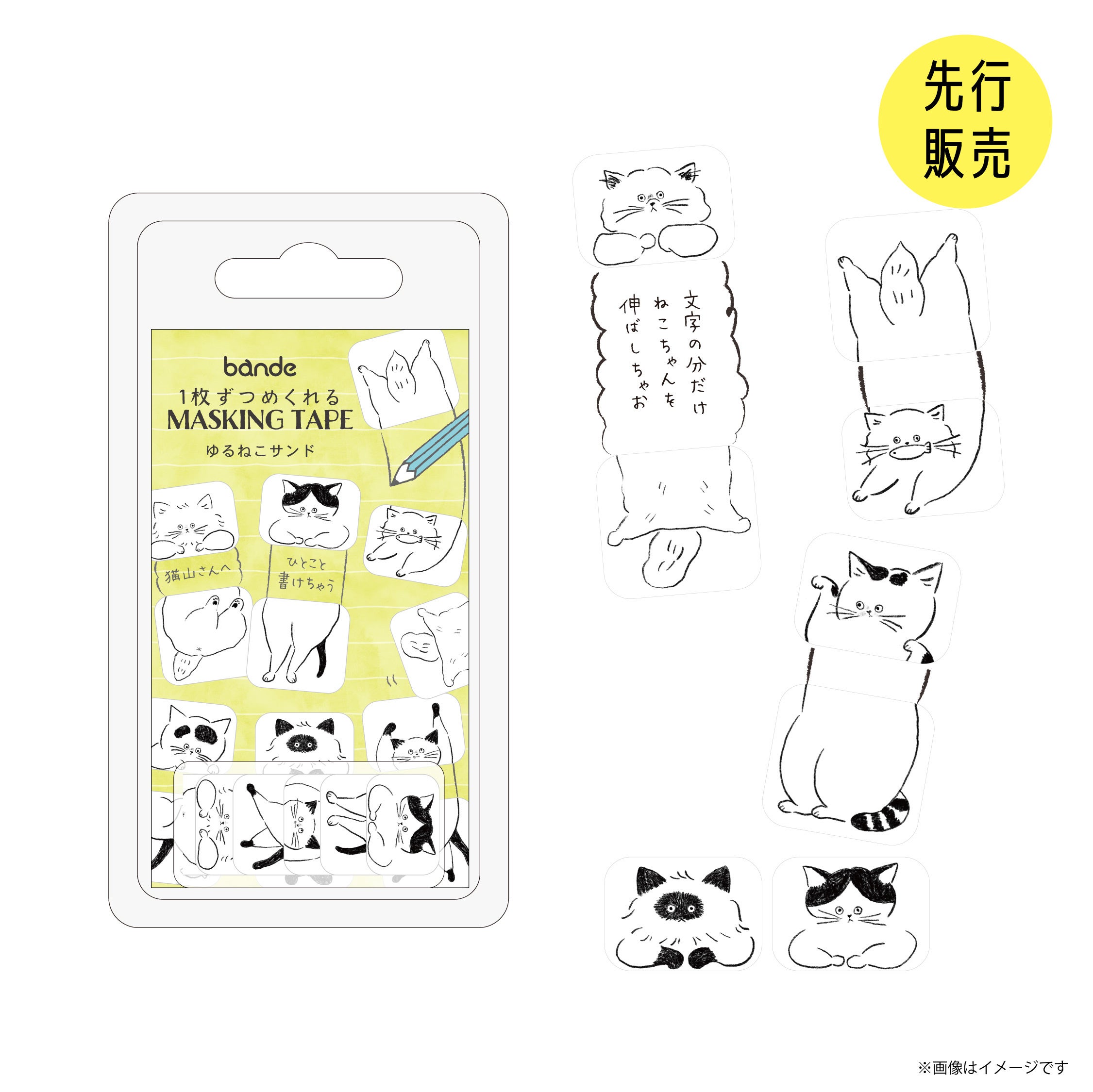 「ゆるねこさんぽ」の作家さんが描く愛嬌たっぷりのゆる~いねこちゃんたちが、あたまとあんよの間にいろんなものをサンドして遊べるステッカーになりました!あたまとあんよだけを貼ってもかわいいです♪「文具女子博in大阪2024」での先行販売です!