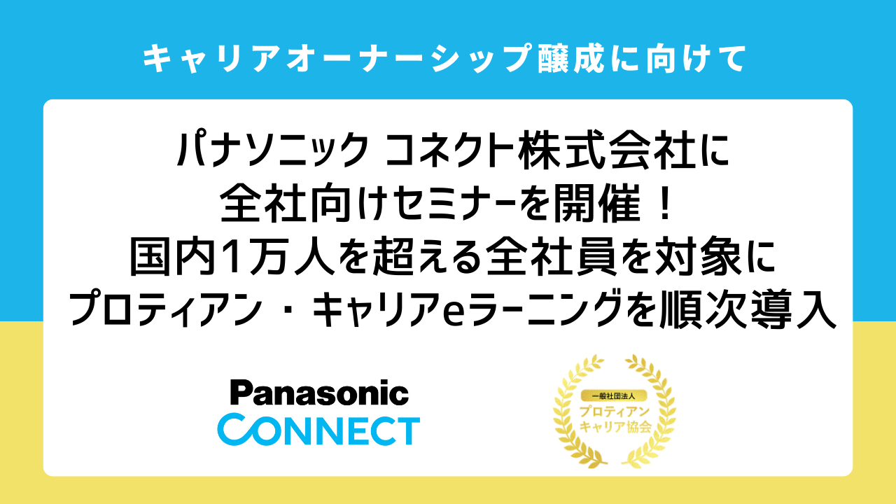 パナソニック コネクト株式会社にキャリアオーナーシップ醸成に向けた全社向けセミナーを開催!キャリア自律推進の教材として、国内1万人を超える全社員を対象にプロティアン・キャリアeラーニングを順次導⼊