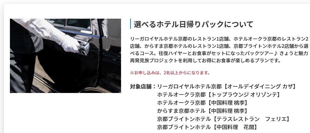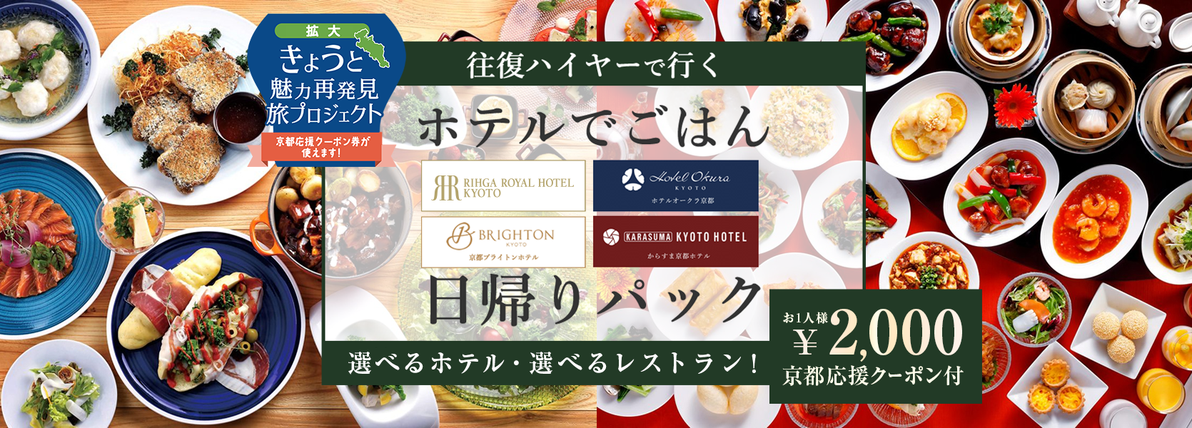 【きょうと魅力再発見プロジェクト】対象商品お一人様づつ2,000円のクーポン付豪華ホテルで中華バイキング+往復ハイヤー+クーポンが付いてくるプラン