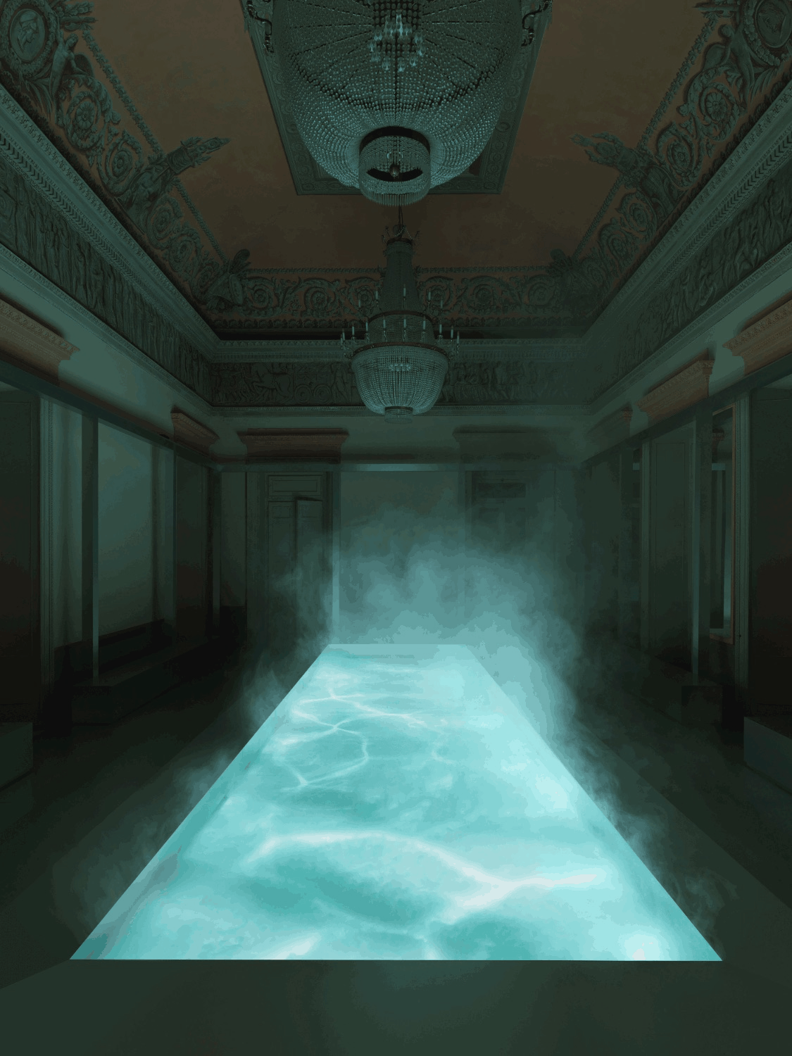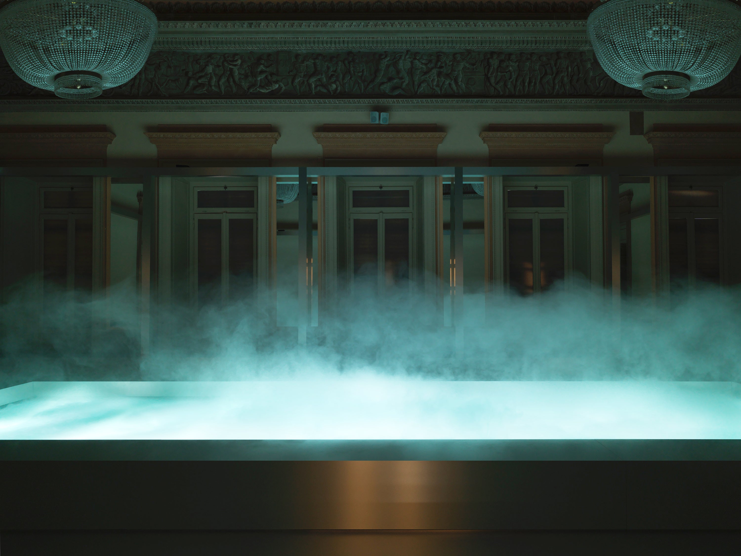 この建物は当初、ナポレオンとその家族、宮廷のために設計され、公の喧騒から一線を画した特別な空間として構想されました。建築は整った軸線で構成され、周囲の公園へと開かれています。著名なデザインスタジオ Crosby Studios とのパートナーシップにより実現した本インスタレーション「Calma」は、休息と内省のひとときをもたらします。