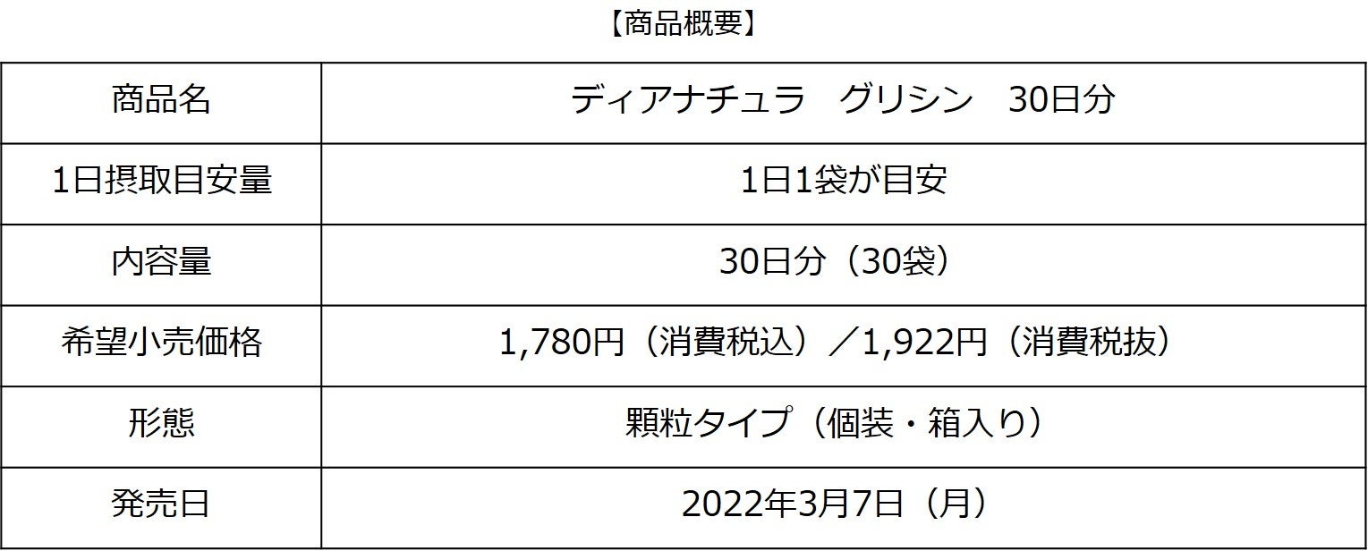 「ディアナチュラ」ブランドのラインアップ拡充『ディアナチュラ グリシン 30日分』3月7日新発売