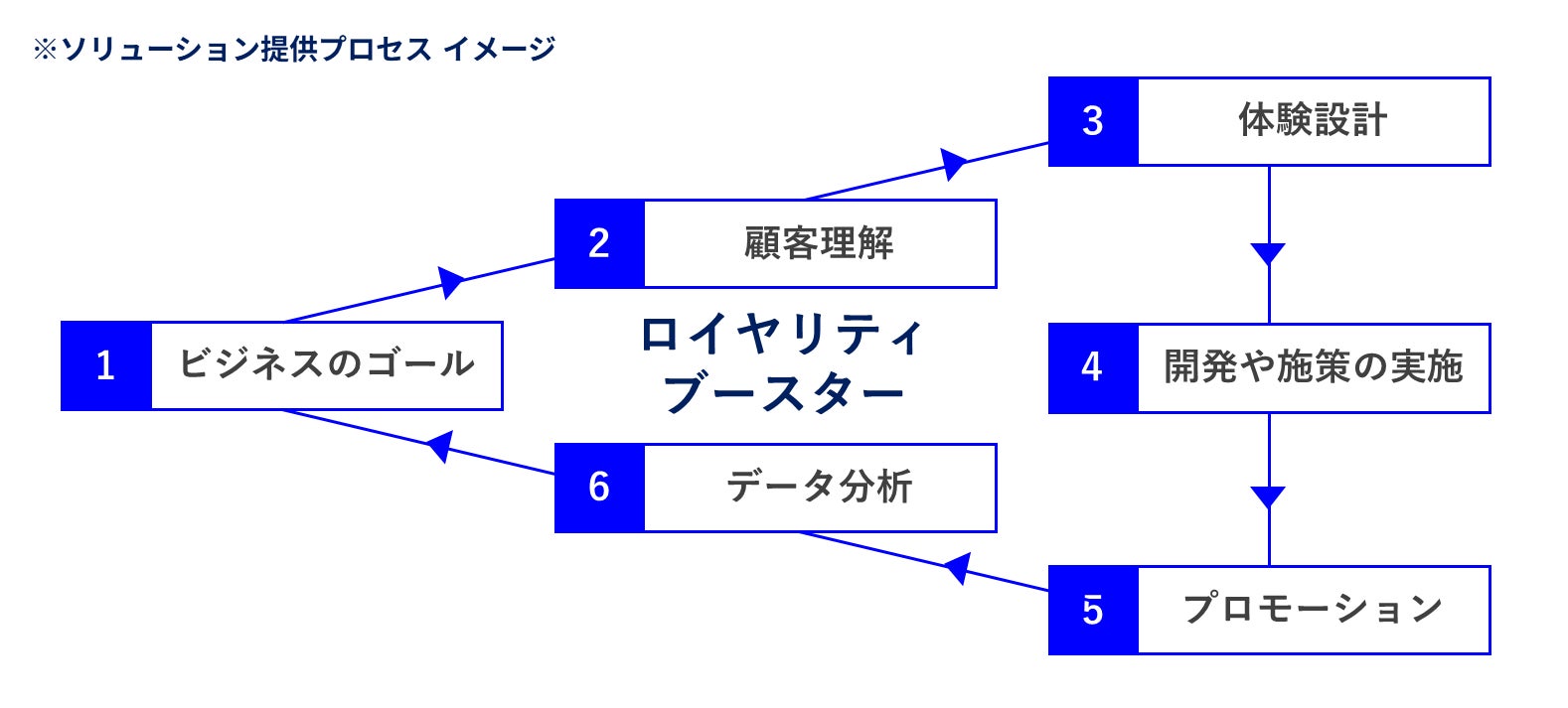 「ロイヤリティ ブースター」は、セガXDがこれまでに培ってきた“ゲームが持つ人を夢中にさせる力”をベースにした「ゲーミフィケーション」を活用し、CXデザイン・体験設計の独自フレームワーク「CXのあいうえおⓇ」を使用する伴走型の顧客ロイヤリティ向上ソリューションです。企業が抱える課題の一つである顧客ロイヤリティを最大限に高めることを目的に、ビジネスゴールの定義から、顧客体験の設計、プロモーション、そして運用までを行います。