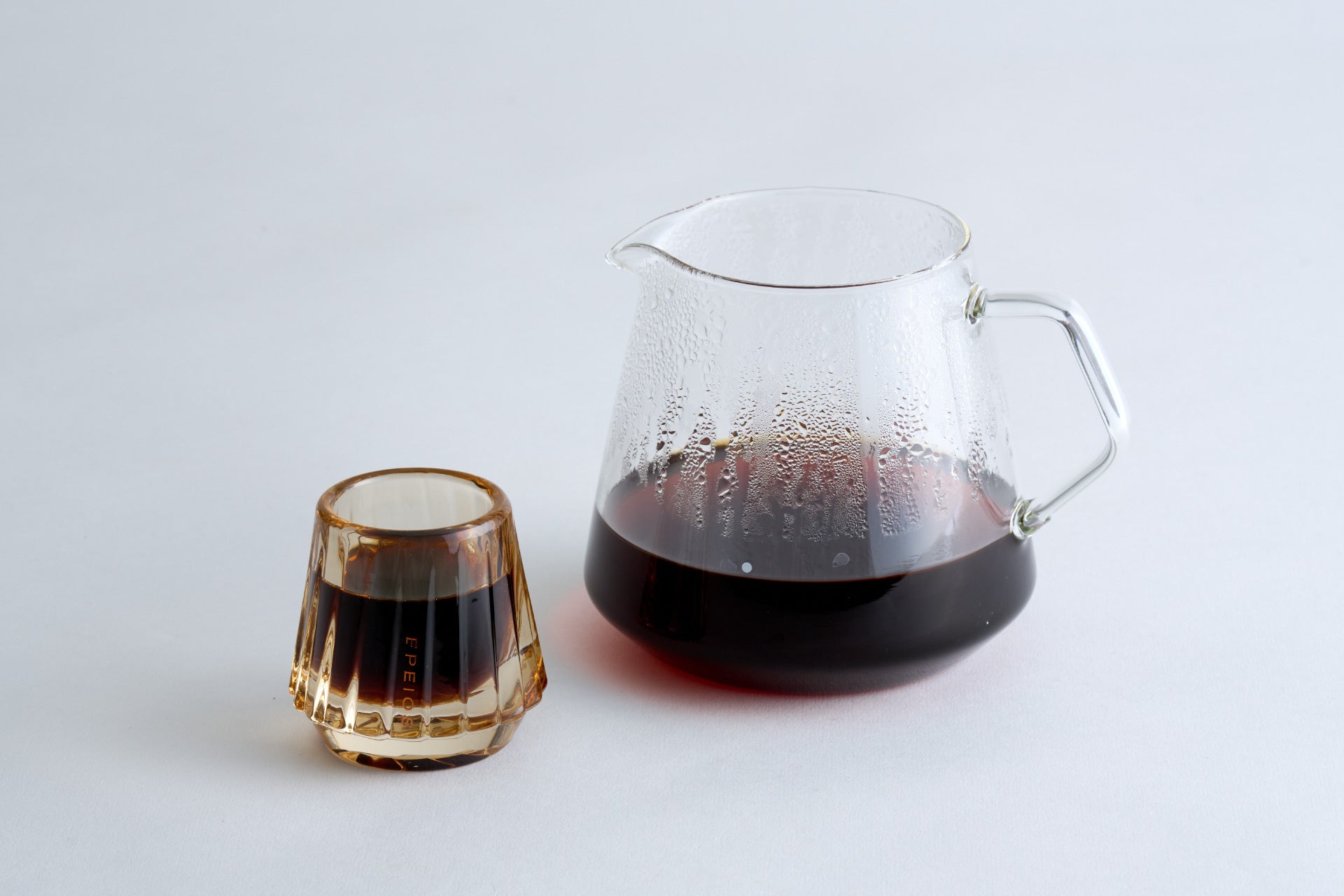 キスカップは陶器製とガラス製の2つをラインナップ。容量は陶器製のモデルで約65ml、ガラス製のモデルで約45mlほどと、お猪口ほどの小ぶりなサイズ感を採用。