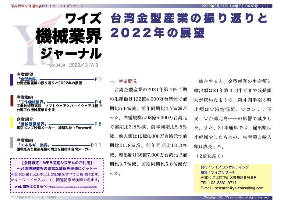台湾金型産業の振り返りと2022年の展望<ワイズ機械業界ジャーナル2022年3月第3週号発行>