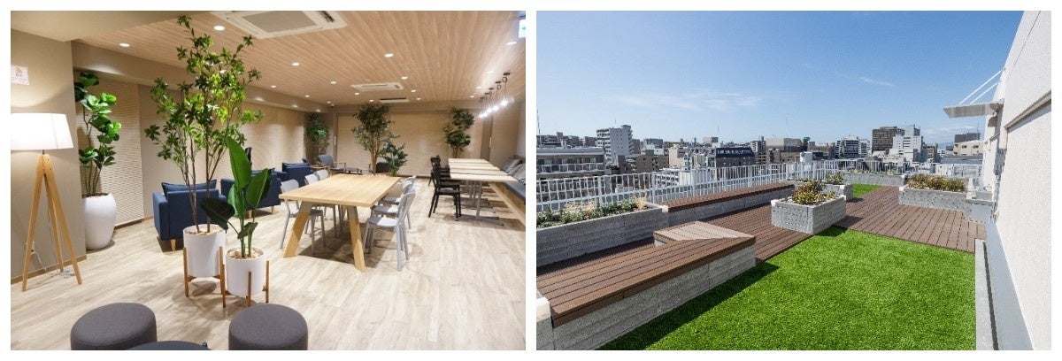 「エルプレイス江坂Ⅱ」ではほかにも、リフレッシュ空間として屋上テラスやフィットネスルームを備え、定期的なヨガ教室の開催により入居者間の交流を促しています。