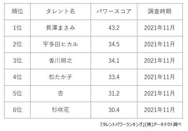 タレントパワーランキングは、株式会社アーキテクトが実施する業界最大規模のタレント(芸能人等有名人)調査結果をもとに、各タレントの有するパワーをリアルタイムにお届けします。